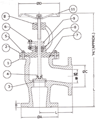 | 11 | HAND WHEEL | 1 | Cast Iron - GG25 / IS - 210 Gr. FG 200 / 220 |